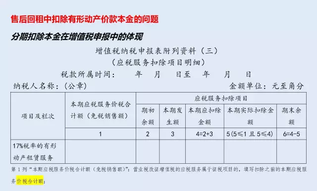 90號公告第三條規(guī)定,納稅人提供有形動產(chǎn)融資性售后回租服務(wù),計算當(dāng)期銷售額時可以扣除的有形動產(chǎn)價款本金,為書面合同約定的當(dāng)期應(yīng)當(dāng)收取的本金。無書面合同或者書面合同沒有約定的,為當(dāng)期實際收取的本金。